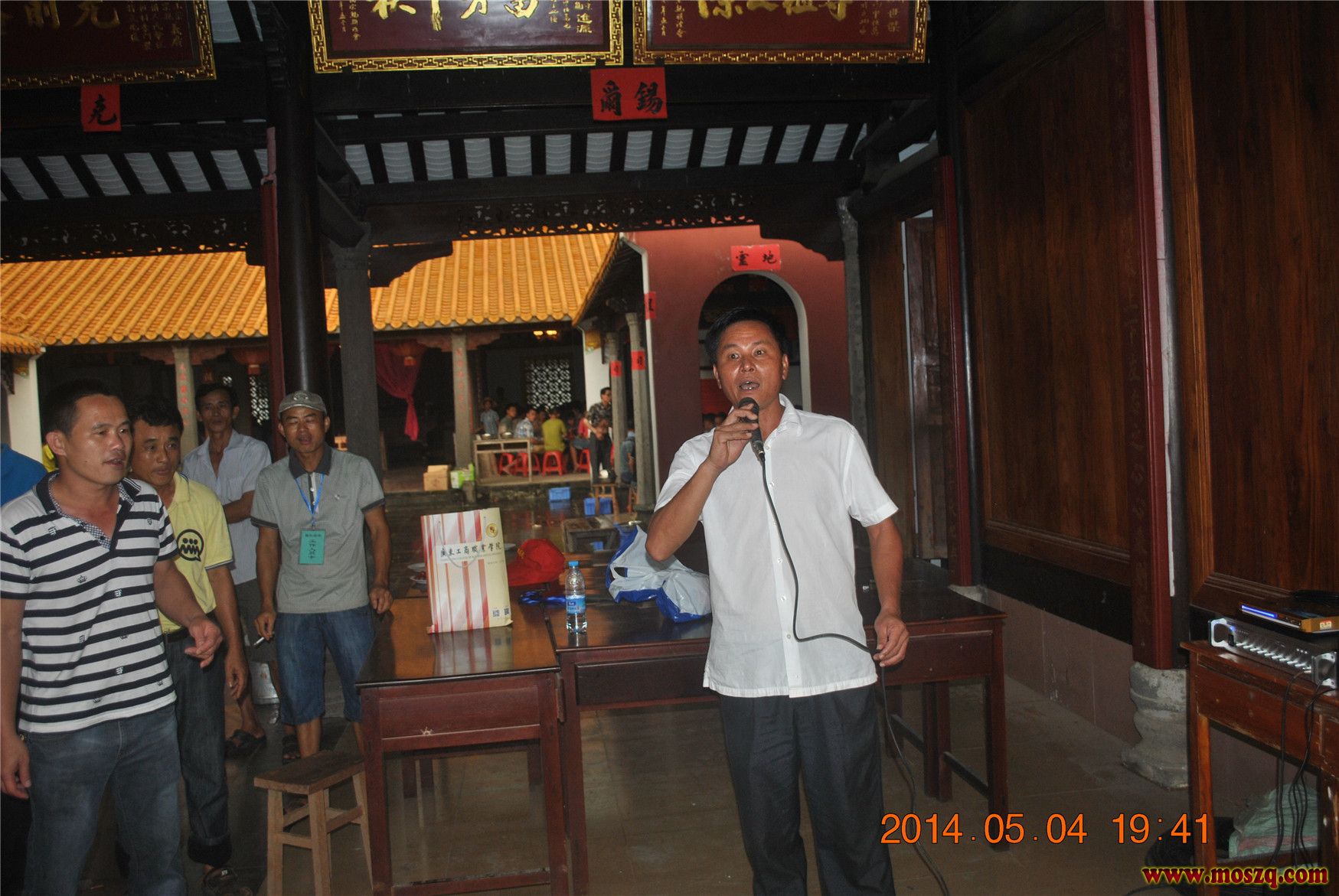 这天上午九点组织全省莫氏青年在排坡覌看三县一市(海口市,文昌,海师,定安)的男子排球赛精彩表演。比赛采用转环制,场面十分精彩激烈。获得广大覌热烈掌声。通过一天较量第一名海师队。第二名海口队,第三名定安队,第四名文昌队。下午五半钟全省莫氏兄弟九百多人聚集在莫氏祖祠开庆祝五四青年节大会,大会由管区主任莫若淦主持,首先由青年代表莫定育讲话他说:五四青年节已经过去了整整90年,而继承和发扬“五四精神”的责任已经落在了大家的肩上。所以大家应该明白什么是“五四精神”。我的理解是这样的: “五四精神”是中国青年强烈爱国热情的体现。当时进步的青年一代,以国家的兴衰为己任,这种高尚的爱国情操是值得我们当代中学生学习的。我认为在当今社会,好好学习科学文化知识,长大以后能以自己的学识和本领报效祖国,为中华之再次崛起做出自己的贡献,这就是“五四”精神在当代中国的最好体现。 “五四精神”是一种不畏艰难,顽强斗争的精神。当年面对军阀政府的逮捕和镇压,爱国青年们没有被吓倒,而是继续坚持着斗争。同样,现在我们生活在和平社会,我觉得同学们要是在生活和学习上碰到什么困难和挫折时,也千万不要动摇自己的信念。要学会坚持,要学会战胜困难,要做生活的强者! 今我们纪念它就是发扬五四精神,人人争当时先锋,创造美好的明天。接由海南莫氏联谊会副会莫炳耀代表海南莫氏联谊会祝贺。他说一个民族,没有振奋精神,没有高尚的品格,没有坚定正确的方向,不可能自立于世界民族之林。中华民族的伟大精神是不可磨灭的,也是决不允许被磨灭的。广大莫氏青年朋友们,让我们继承和发展五四传统精神,让“爱国丶进步丶民主丶科学”这八个大字在21世纪闪闪发光,让中华民族伟大的民族精神在实现中华民族伟大复兴的历史进程中谱写更加壮丽的一页!祝大家节日快乐。